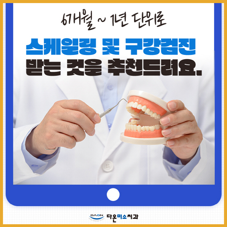 바로 정기적인 구강 검진과 스케일링으로 꾸준하게 관리해 주는 것이예요.