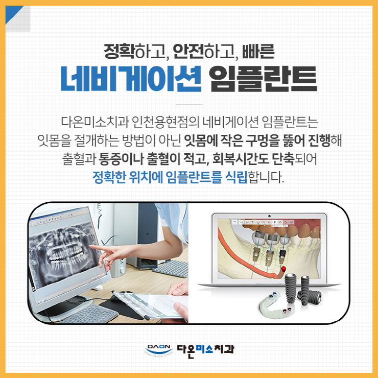 불필요한 잇몸 절개 없이 진행하는 내비게이션 임플란트 방식을 적용해서 환자분들의 부담을 보다 줄였어요.