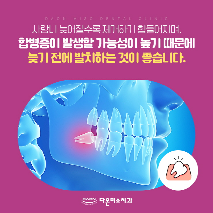 이와 더불어 비정상적인 방향으로 자란 사랑니의 경우, 인접한 어금니를 압박하고 통증을 유발하거나 치조골에 부담을 주는 원인이 되기도 했습니다.